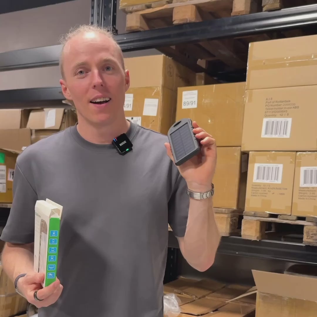 Solcelle powerbank med LED-lygte og kompas, 10.000mAh
